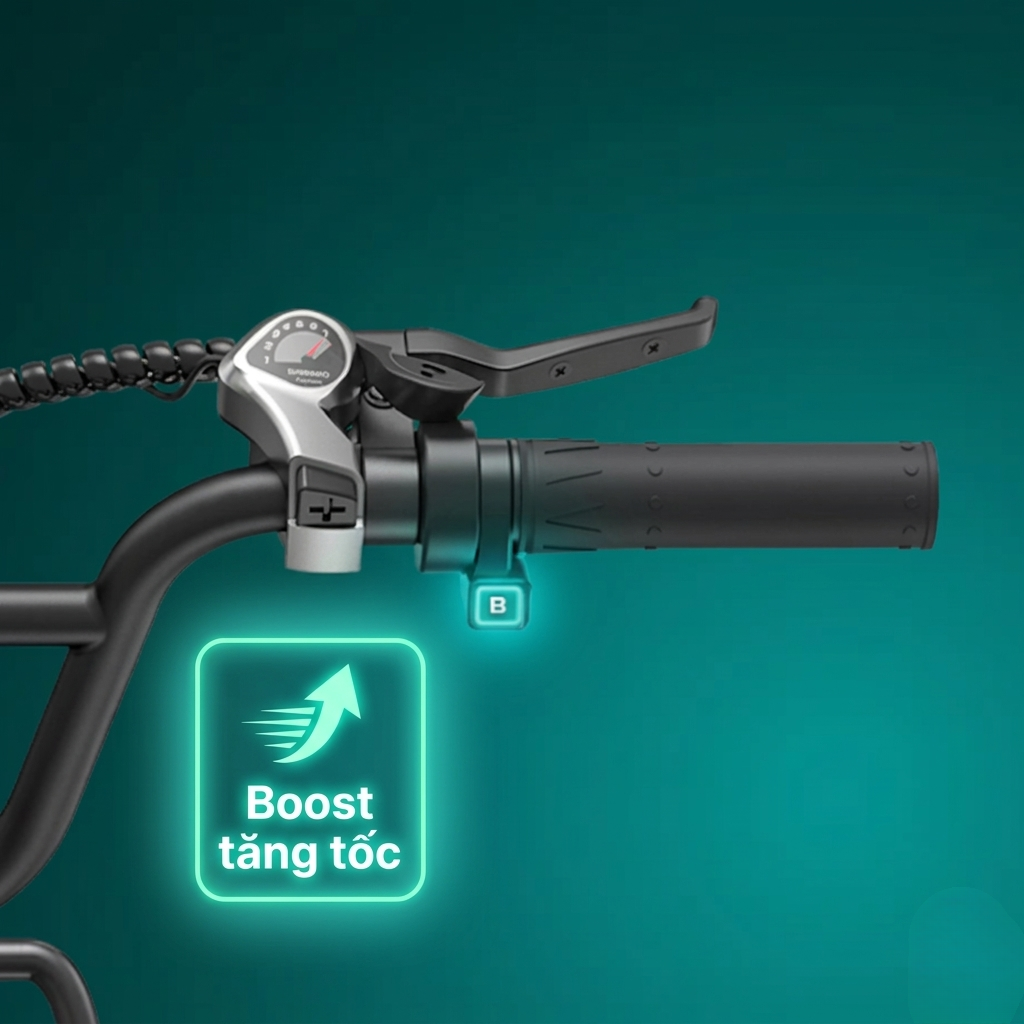 Nút Boost sẽ có tính năng hỗ trợ đẩy mình đi khi muốn tăng tốc. Bạn chỉ cần đồng thời ấn nút boost và nhấn chân một lực là nó sẽ hỗ trợ đẩy mình nhanh.
