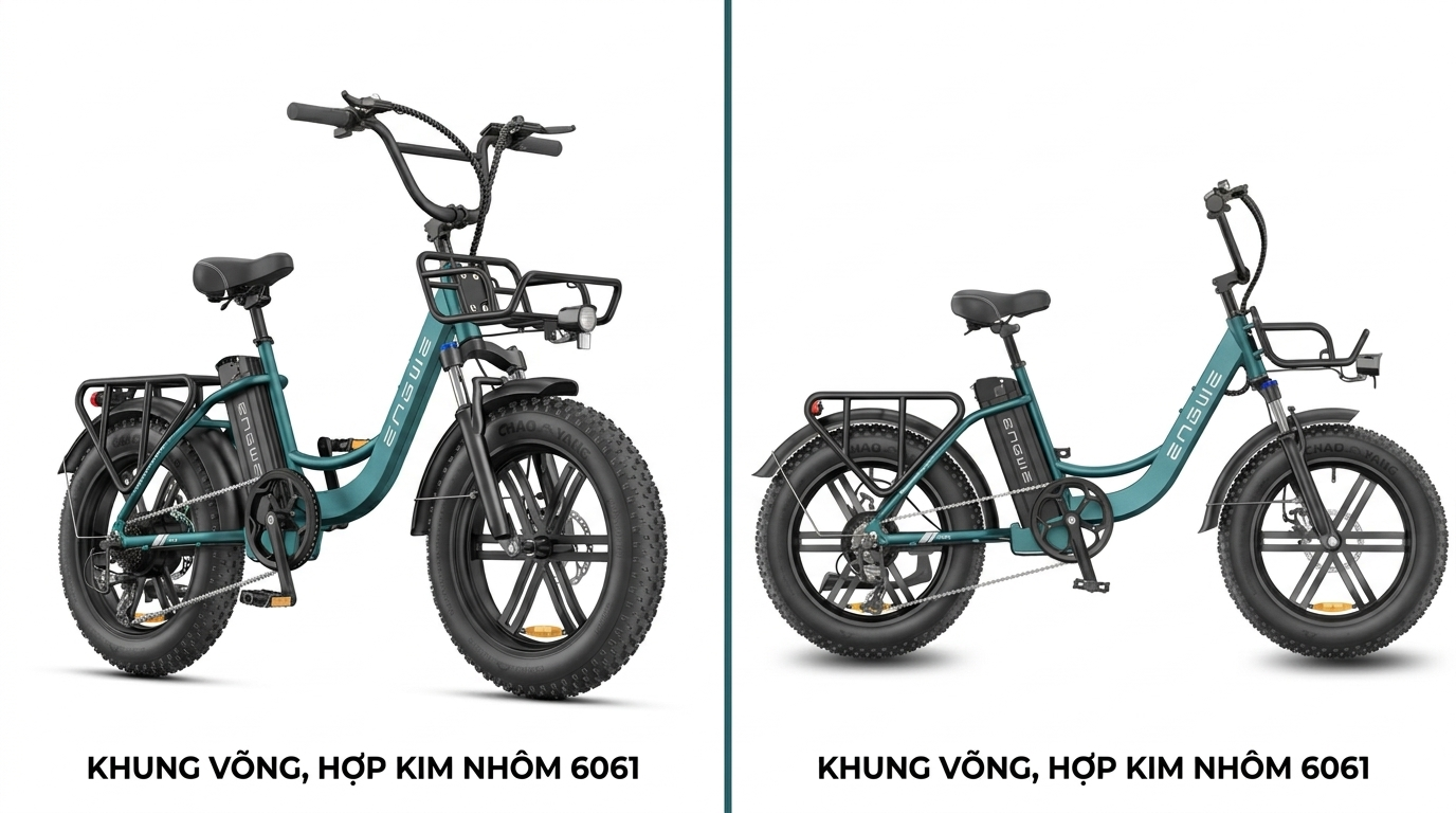 Điểm nhấn đầu tiên của Engwe L20 Boost chính là thiết kế khung võng hợp kim nhôm 6061. Khác với các dòng xe thể thao dóng cao, thiết kế này cho phép người dùng bước ngang qua xe một cách dễ dàng.