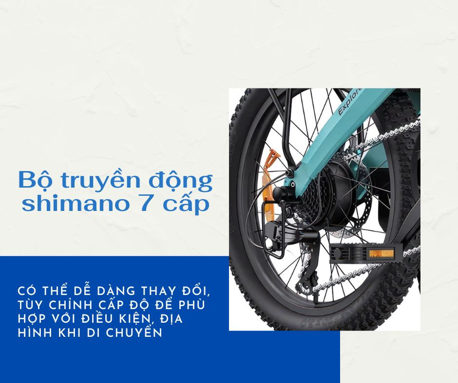 Nếu sợ đạp nặng, mỏi chân thì đừng lo vì chiếc xe này trang bị đến 7 cấp số shimano, có thể dễ dàng thay đổi, tùy chỉnh cấp độ để phù hợp với điều kiện, địa hình khi di chuyển, Nhờ có bộ shimano này mà khi đạp nhẹ hơn hẳn lại đỡ mất sức