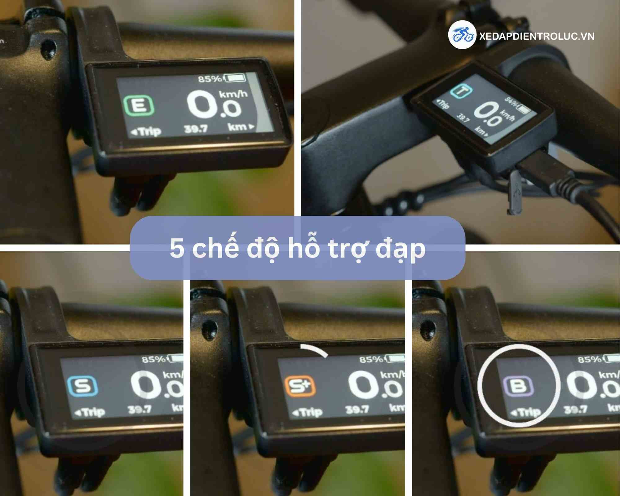 Màn hình Led nhiều màu hiển thị sắc nét các thông số: quãng đường, tốc độ, dung lượng pin. Bạn cũng có thế thấy màn hình P275 PRO còn hiển thị đầy đủ %pin (những dòng trước của Engwe chưa có) nhờ vậy mà chúng ta có thể kiểm soát được dung lượng pin của xe. Có đến 5 chế độ khác nhau:Eco, tour, sport, sport plus và boost giúp tăng trải nghiệm đạp cho người dùng. Tích hợp hệ thống chống nước IPX6 bảo vệ xe bạn, giúp kéo dài tuổi thọ xe khi bạn di chuyển trong điều kiẹn thời tiết xấu.