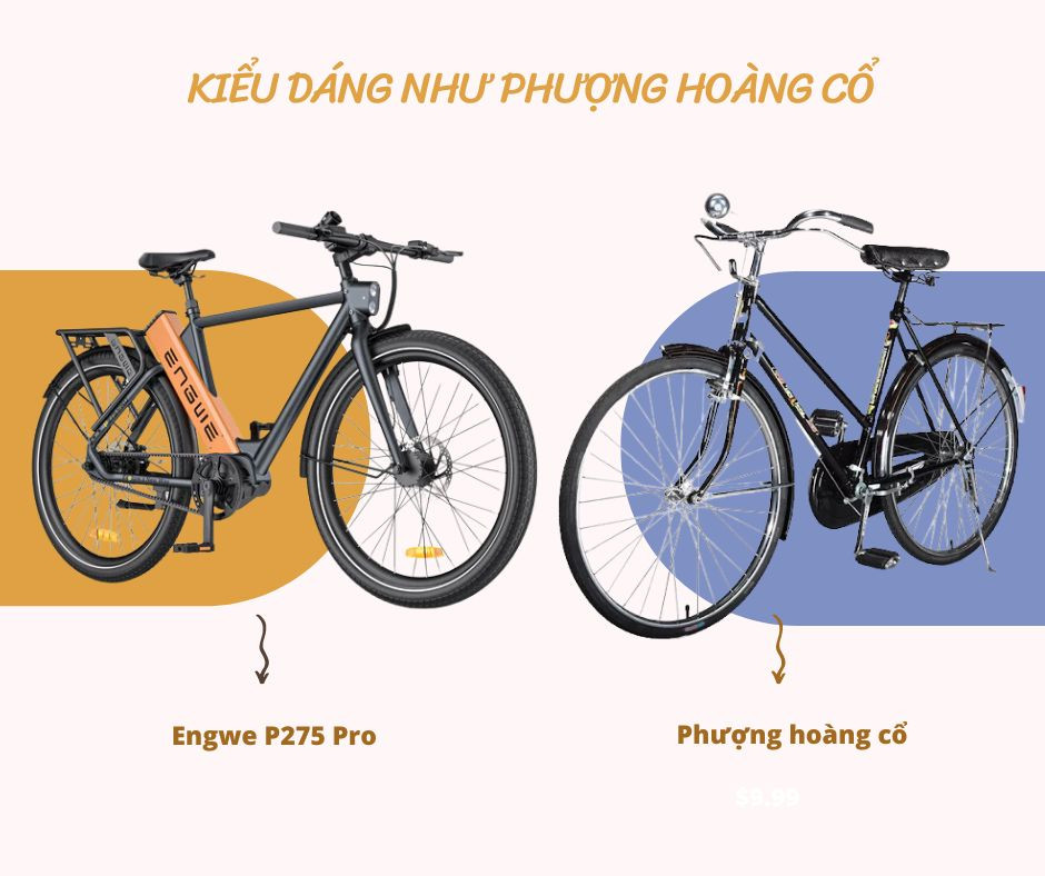 Kiểu dáng của Engwe P275 Pro là sự kết hợp giữa cổ điển và hiện đại. Chiếc xe chỉ nặng khoảng 25,3kg không quá hầm hố nên mang vác, di chuyển khá thuận tiện. Nhìn vào chiếc xe này, các bạn hoàn toàn có thể hình dung ra những con xe phượng hoàng cổ của thập niên về trước nhưng vẫn cực tinh gọn và hiện đại để phù hợp với mục đích di chuyển trong thành phố.
