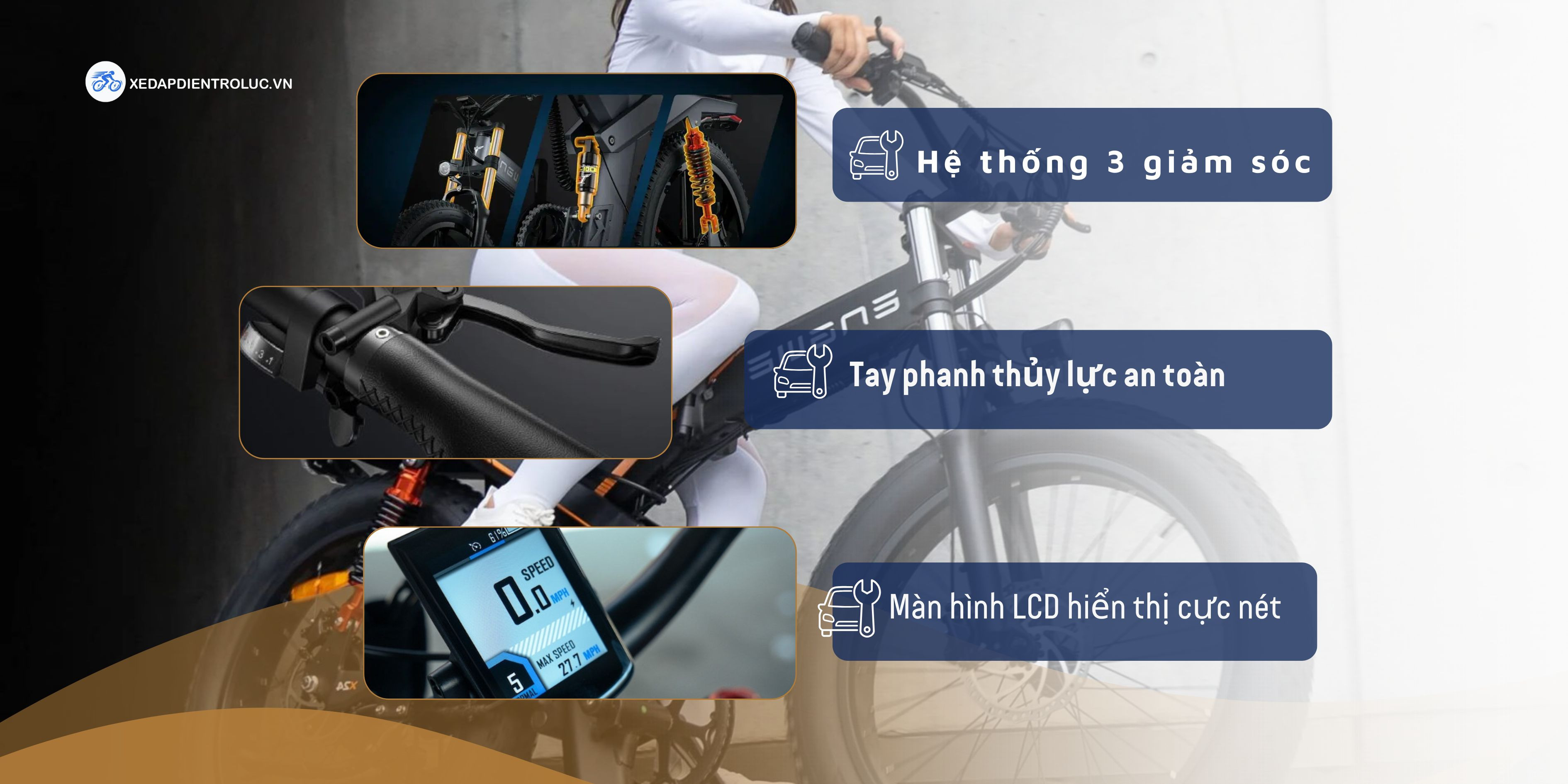 Engwe X24 sở hữu khung xe hợp kim nhôm cao cấp, mang đến độ bền cao nhưng vẫn đảm bảo trọng lượng nhẹ. Với thiết kế gấp gọn, xe phù hợp cho cả nhu cầu di chuyển trong thành phố lẫn những chuyến đi xa. Hệ thống giảm xóc trước và sau giúp xe vận hành êm ái trên nhiều địa hình khác nhau.