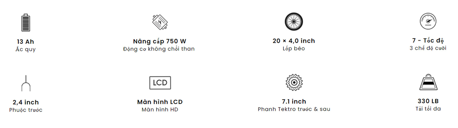 Động cơ xe không chổi than DC 48V 750W , giúp bạn có thể đi được với tốc độ 45km/giờ.Pin xe Lithium 48V 12.8Ah, có thể tháo rời, tiện lợi cho việc sạc hoặc di chuyển
