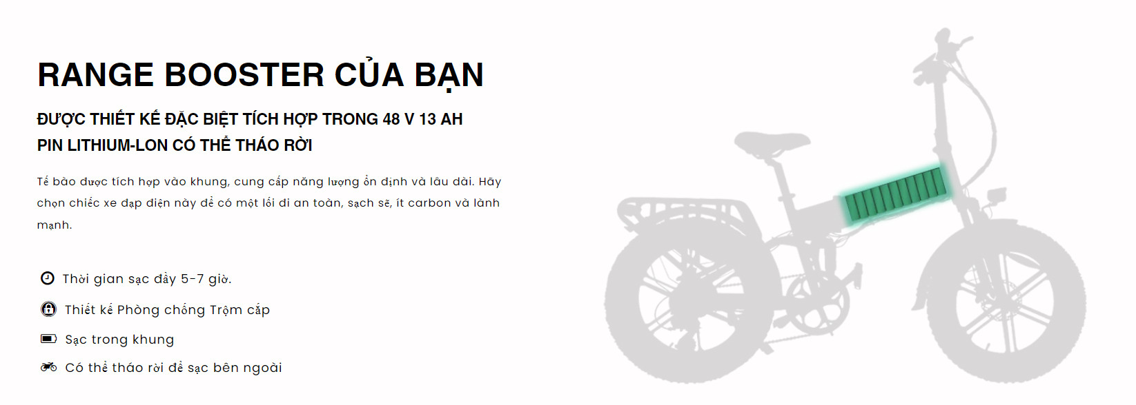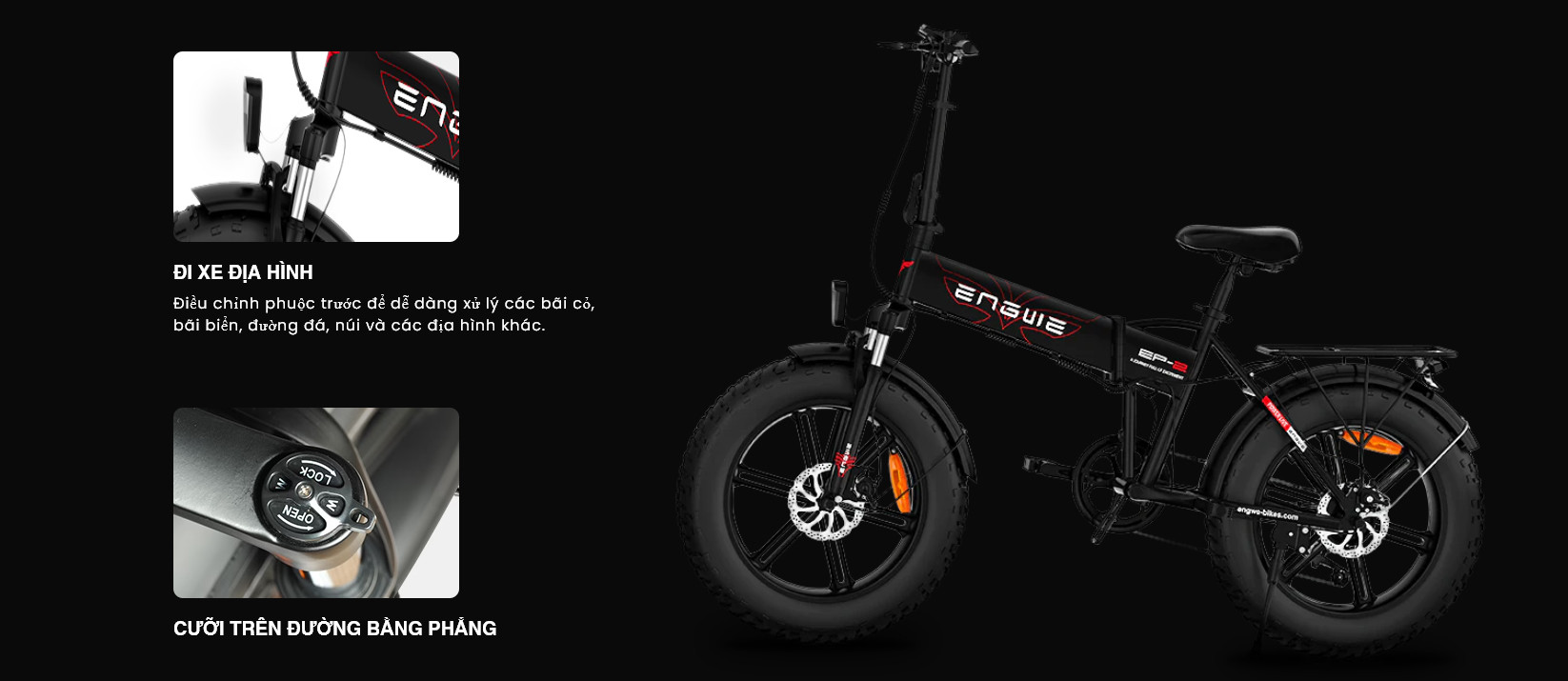 Với 1 sức mạnh 750W thì cho động cơ chuyển động cực nhanh, Pin 13Ah cực khủng khiếp.Phuộc trước đem lại cảm giác vận hành êm ái,xe Engwe EP-2 Pro là dòng xe trợ lực điện có thể gấp gọn, khung xe hợp kim nhôm có khả năng chống ăn mòn và chống nổ, tăng tuổi thọ cho xe
