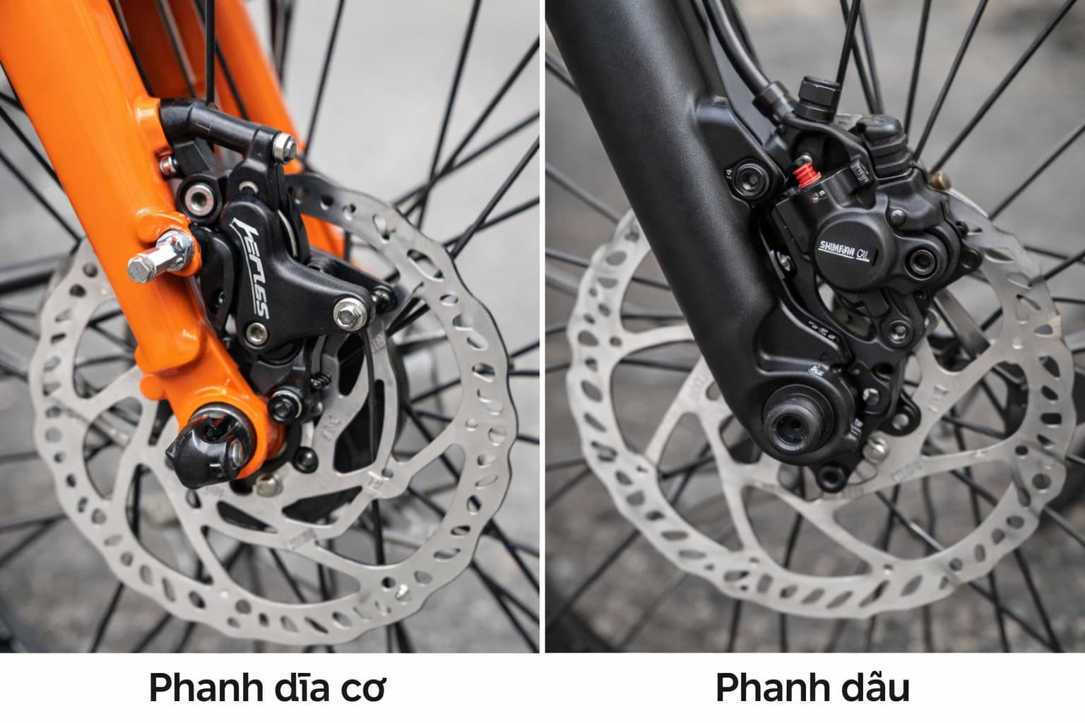 Có 2 loại má phanh phổ biến nhất cần lưu ý của xe đạp trợ lực điện là : phanh đĩa cơ và phanh dầu