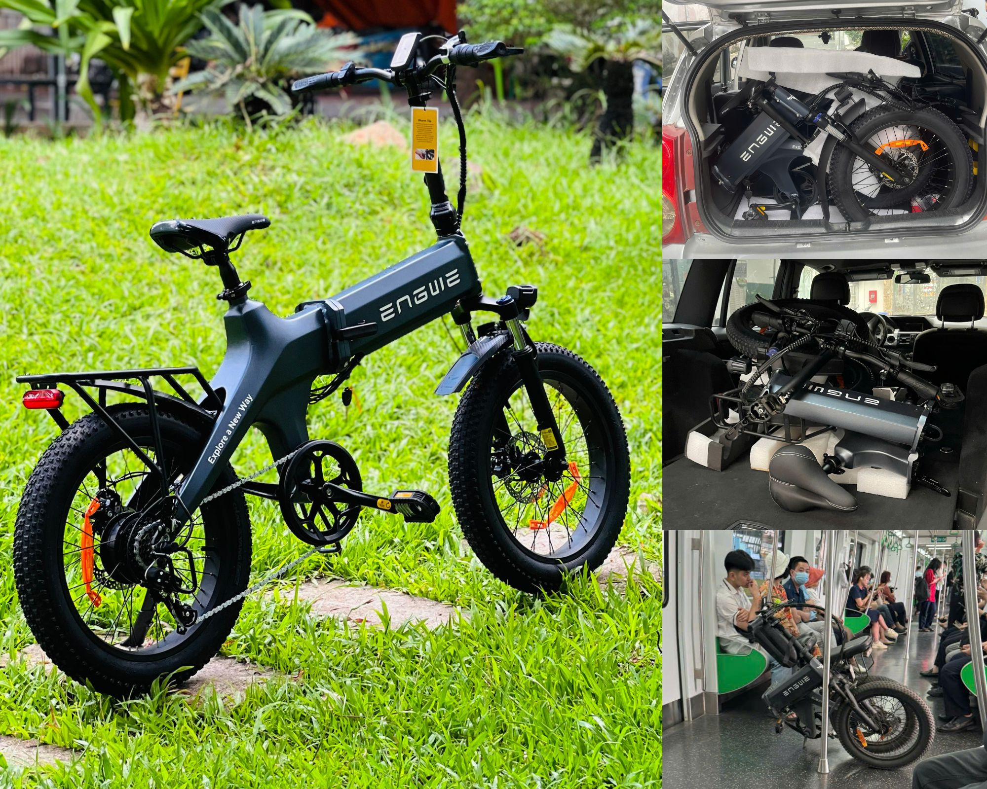 So với các mẫu trên, Engwe C20 Pro có kích thước gấp gọn lớn hơn một chút nhưng vẫn đủ để đặt vừa cốp ô tô, thuận tiện cho việc di chuyển xa. Xe được trang bị động cơ mạnh mẽ, dung lượng pin lớn, giúp bạn di chuyển trên quãng đường dài một cách thoải mái. Việc mang lên tàu điện cũng không quá khó khăn khi bạn đã quen với thao tác gấp gọn nhanh chóng của xe.
