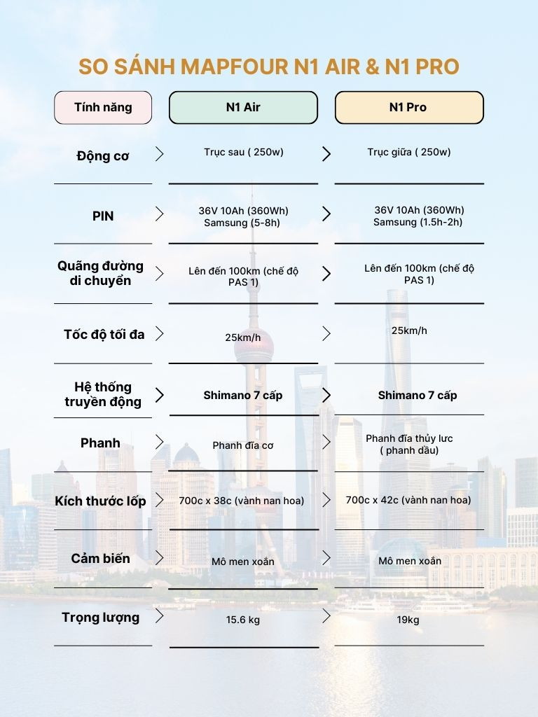 Tóm lại, MapFour N1 Air và N1 Pro đều là những mẫu xe đạp điện trợ lực khung carbon ấn tượng với nhiều ưu điểm nổi bật. Tuy nhiên, việc lựa chọn mẫu xe nào là tốt nhất sẽ phụ thuộc vào nhu cầu sử dụng, ngân sách và sở thích cá nhân của từng người.