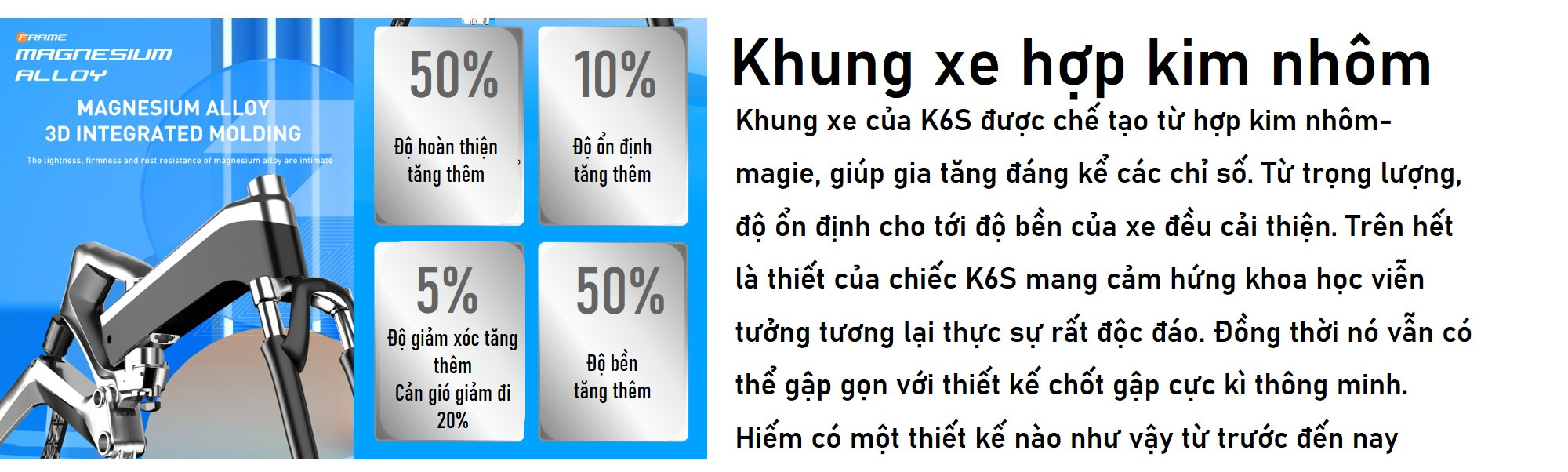 Cũng phải bàn thêm về thiết kế, với sự sáng tạo từ nhà sản xuất, vô vàn mẫu xe độc lạ đã được ra đời. Chúng cũng vô cùng thông minh khi những thiết kế này đều giúp cho chiếc xe đạt được hiệu năng tốt nhất. Ví dụ như chiếc Zhengbu K6S với thiết kế cảm hứng từ chữ Z cực kì độc lạ hay chiếc D30C của ADO siêu nhẹ, siêu bền. Đồng thời những chiếc xe này còn có khả năng gấp gọn, giúp cho việc lưu trữ, cất kho hay vận chuyển xa trở nên dễ dàng hơn bao giờ hết. Ngoài ra 1 khung xe chắc chắn còn giúp bảo vệ viên pin được hoàn hảo trước điều kiện thời tiết, đặc biệt là khí hậu gió mùa nhiệt đới ẩm như ở nước ta. Về màu sắc cũng rất là đẹp, tiêu biểu là 2 chiếc xe phiên bản giới hạn Engwe Engine Pro bản AURORA hay ADO A26S Xanh Chim Công.