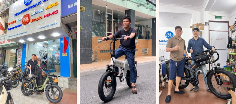 Cô Hồng - khách hàng mới trong tháng sáu cũng mua ủng hộ của hàng chiếc Engwe L20 làm phương tiện vừa di chuyển vừa thể dục cho bản thân. Anh Dương ở Sài Gòn sau khi được nhân viên tư vấn cũng chọn mua cho bản thân chiếc C20 pro làm phương tiện đi làm hàng ngày của bản thân. Khác với anh Dương, anh Bảo thích những mẫu xe có kiểu dáng ngầu và động cơ cực lớn nên đã lựa chọn cho bản thân chiếc Engwe X24 để di chuyển hàng ngày.