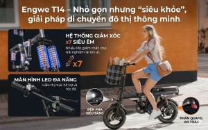 Thiết Kế Gấp Gọn: Một trong những điểm nổi bật nhất của Engwe X24 là khả năng gấp gọn tiện lợi. Với thiết kế linh hoạt này, người dùng có thể dễ dàng gấp xe lại khi không sử dụng, đi du lịch, giúp tiết kiệm không gian và thuận tiện cho việc di chuyển trong thành phố đông đúc.