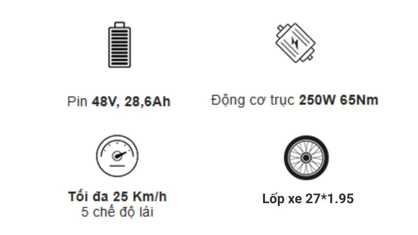 – Không có tay ga — đây là xe đạp trợ lực hoàn toàn bằng bàn đạp, vì vậy thể lực vẫn đóng vai trò quan trọng.