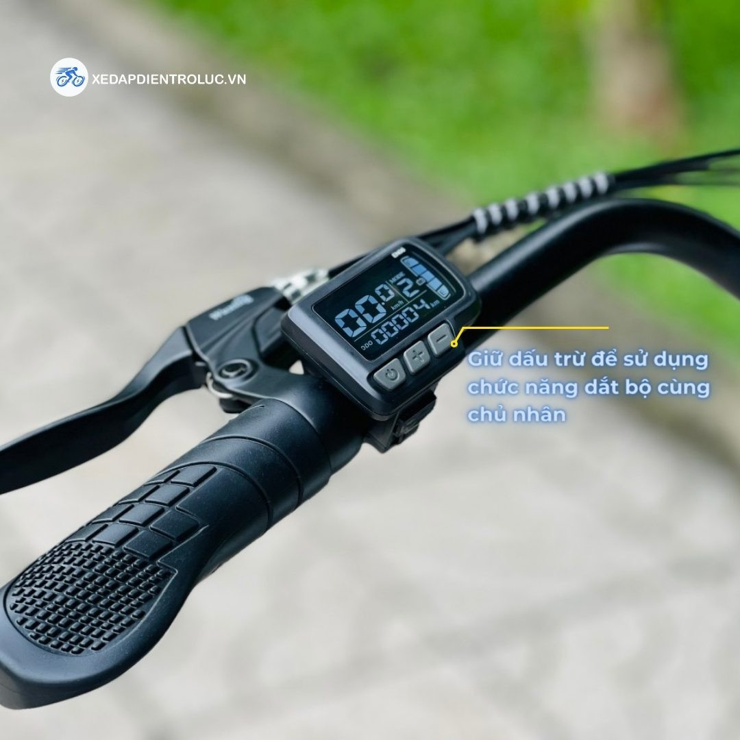 Đây là một chức năng thú vị không phải dòng xe nào cũng có chức năng này. Đi xe đạp mà đến lúc lên dốc cao phải dắt thì đến nơi chắc bạn cũng phải mất khá nhiều thời gian và sức lực. Nhưng khi sử dụng chức năng này bạn sẽ không cần tốn quá nhiều thời gian và sức lực mà vẫn có thể dễ dàng leo lên dốc một cách nhẹ nhàng. Chỉ cần ấn giữ dấu trừ 6-7s trên màn hình là bạn đã có thể sử dụng chức năng này.