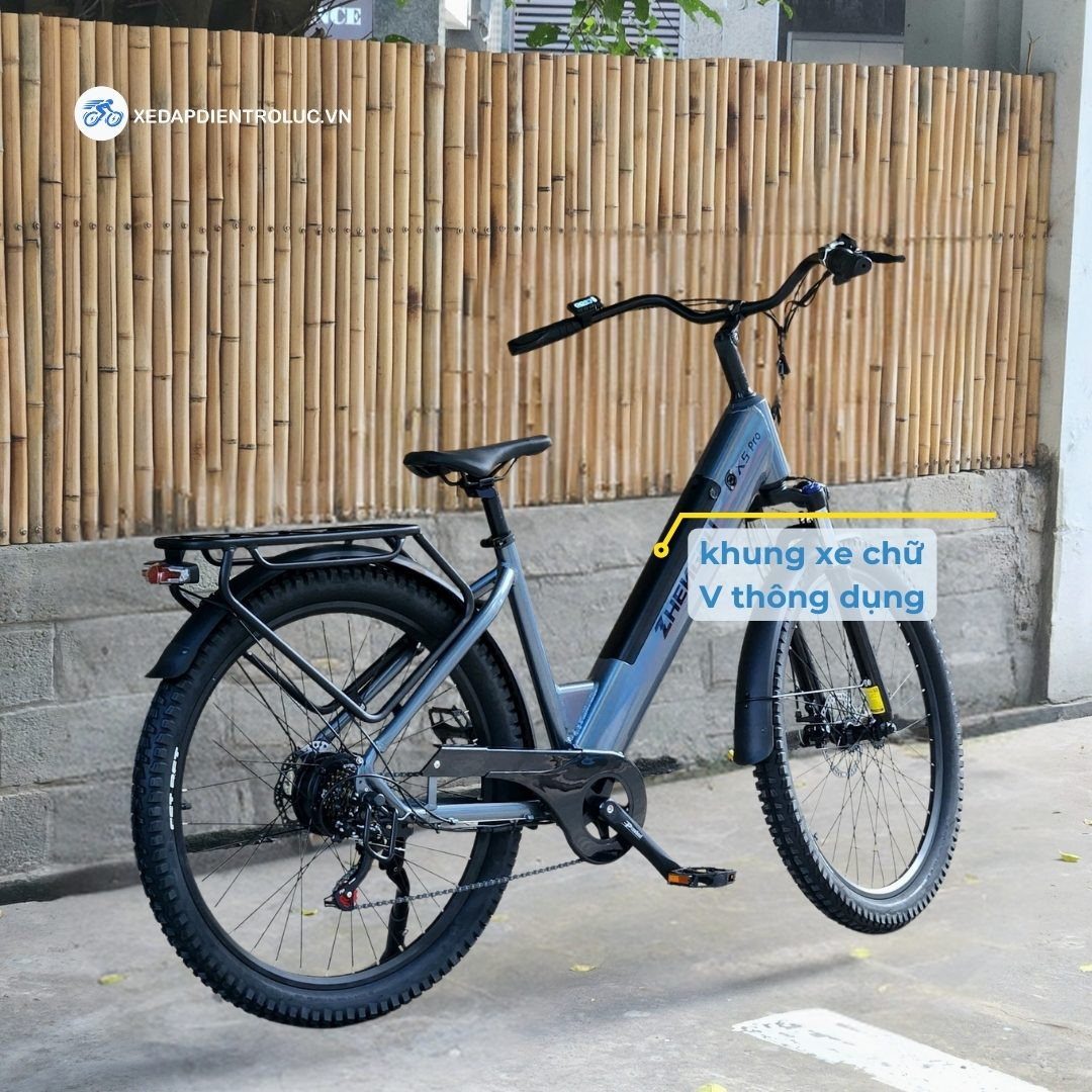 Một trong những tiêu chí khi lựa chọn xe để đi là việc thiết kế khung xe. Nếu khung xe thiết kế quá cao thì rất khó để có thể di chuyển lên xuống một cách dễ dàng. Dường như hãng xe hiểu và nắm bắt được tâm lý của người dùng nên Zhengbu X5 pro được thiết kế với phần khung xe kiểu chữ “V”. Đây cũng là kiểu dáng thiết kế thông dụng và khá phổ biến trong dòng xe đạp nên hầu như ai cũng có thể đi được. Đặc biệt với những cô chú đã lớn tuổi thì kiểu dáng khung này giúp cho việc lên xuống xe được an toàn và dễ dàng hơn.