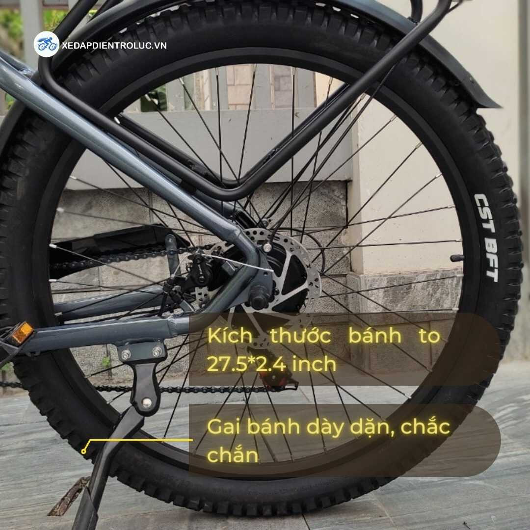 Zhengbu X5 Pro được trang bị bánh xe với kích thước 27.5*2.4 inch to hơn nhiều với các mẫu trước. Trên bề mặt bánh xe có những gai bánh to dày dặn có khả năng bám đường cực tốt mang lại cảm giác thoải mái và êm ái hơn khi ngồi.