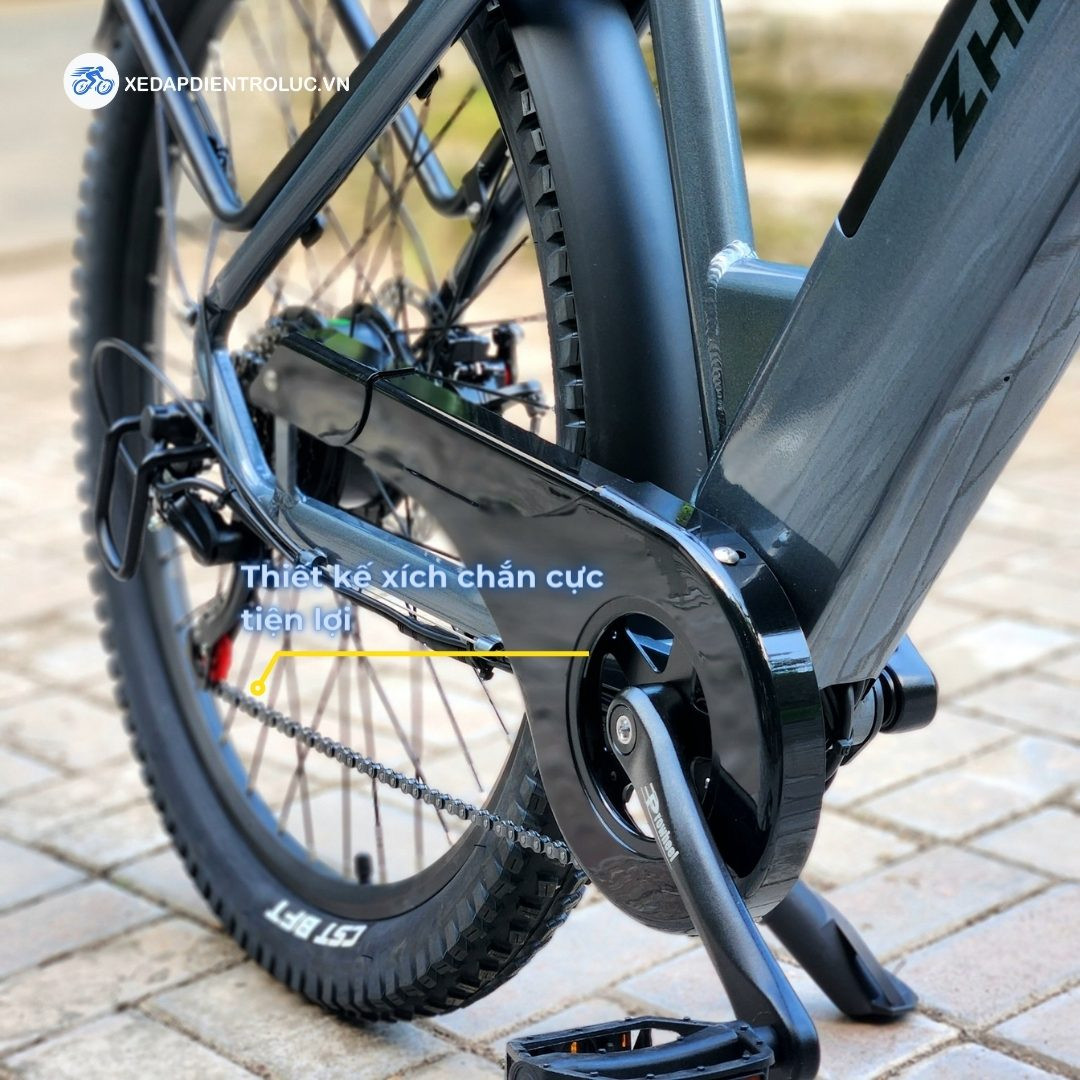 Thông thường các chị em mà mặc váy hoặc quần ống rộng rất e ngại việc đi xe đạp vì váy rất dễ bị cuốn vào xích hoặc bị dơ. Nhưng khi các bạn đi X5 pro thì đây không còn là vấn đề lo ngại nữa. Bạn có thể thoải mái đạp xe khi mặc váy hay diện những mốt ống rộng vì chiếc xe này được thiết kế thêm phần chắn xích giúp chị em di chuyển dễ dàng hơn. Không những vậy nhờ có chắn xích mà xích xe sẽ tránh được bụi bẩn bám vào làm han gỉ, giúp kéo dài tuổi thọ cho xích.