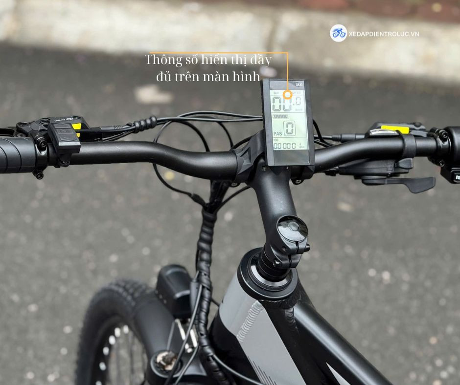 - Màn hình LCD: Trang bị màn hình nước tích hợp chế độ chống nước, các thông số: tốc độ, quãng đường, dung lượng pin... được hiẻn thị rõ ràng sắc nét trên màn hình giúp người đi kiểm soát thay đổi các thông số để phù hợp với mục đích khi di chuyển hơn