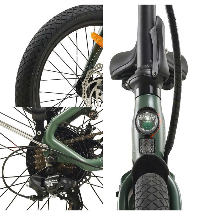 Phanh đĩa an toàn (nhiều khả năng) để đảm bảo khả năng dừng xe chính xác trong điều kiện đô thị — phù hợp với thiết kế trợ lực có tốc độ tối đa ~ 25 km/h.